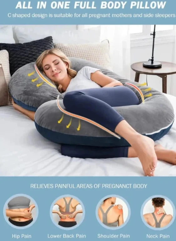 Experience unparalleled comfort with our C-shaped body pillow, specially designed to support your body and promote restful sleep throughout your pregnancy.Enjoy personalized support for your back, hips, and belly with our ergonomic pregnancy pillow, ensuring you wake up refreshed and rejuvenated.